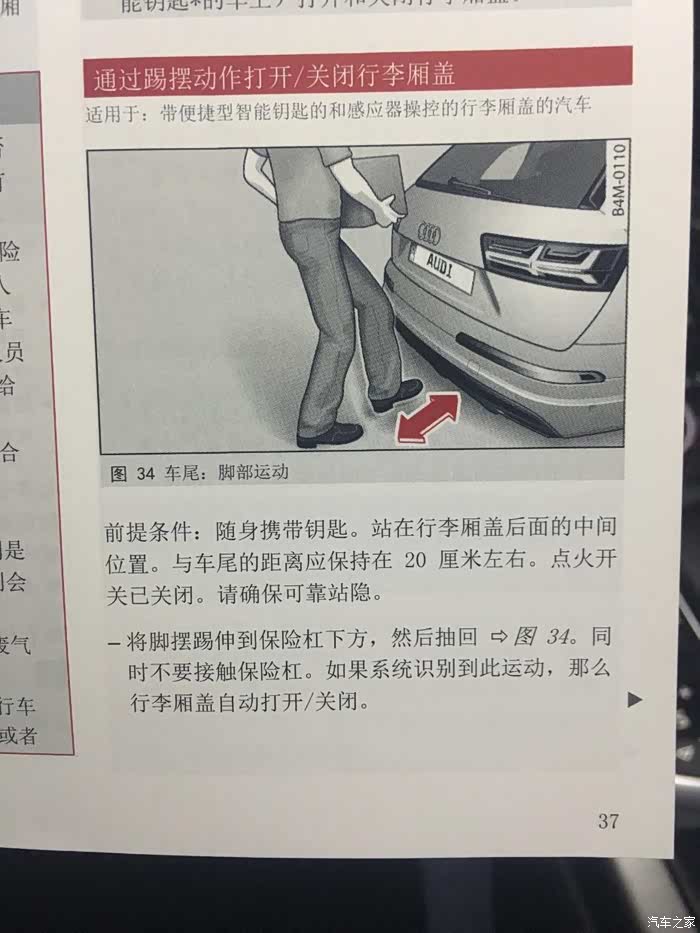 提车已经一个多月了,在使用过程中,我不断的摸索,发现了一些连4S店销售也不知道的小功能。 首先,行李盖脚步感应打开功能,之前,问过销售,销售说不知道,应该属于加配项,可买回车后发现,我的车居然有这个功能,但使用时有三个条件:1、车辆处于熄火状态;2脚部要前后伸缩,不能左右扫动;3、车钥匙在身上。