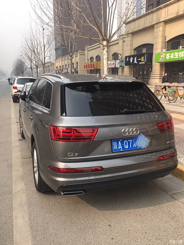 我在网上自选的车牌特意包含了Q7字样,结果在商场偶然发现了一辆和我一样的同胞兄弟。英雄所见略同。