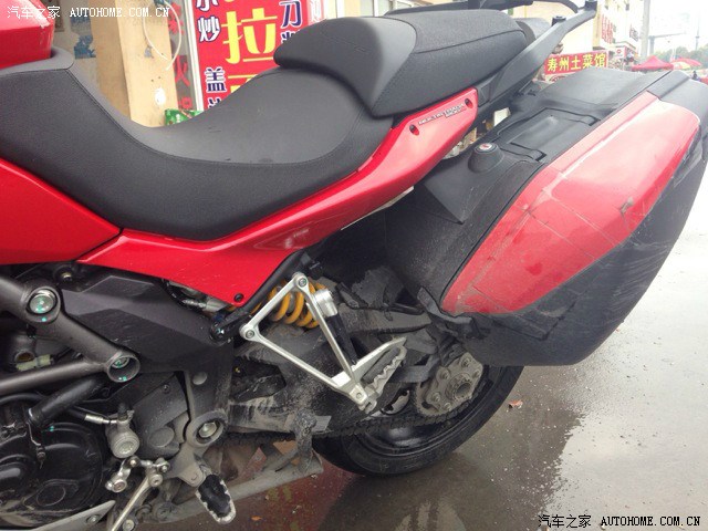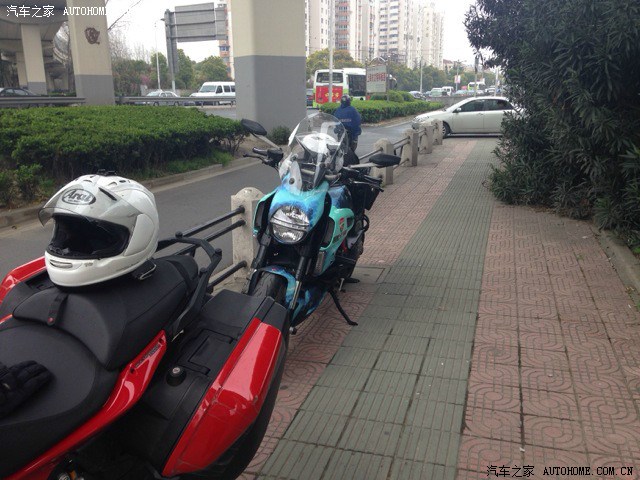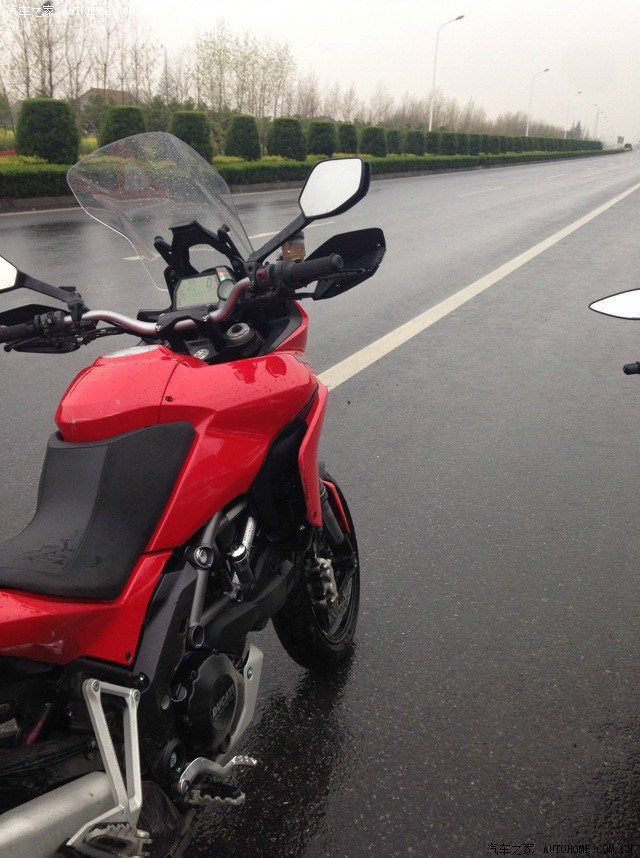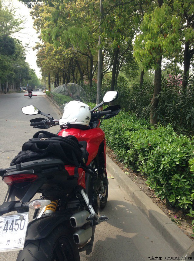 由于骑惯了街车,突然上了坐高850的MTS还真有点不习惯=。=坐姿没有以前战斗,车把较高身体比较直~坐上去后只有两个脚尖能碰到地=。=(身高172,只能脚尖点地。。。)不过人和车磨合了几百公里后这些都不是障碍了,整车转向角度比较小,操控很轻松,动力模式在Turning和Urban模式下还是比较柔和的,油门反应比较线性,区别在于Turning有150匹马力,动力比较充沛,Urban模式下只有100匹,但是DTC(电子循迹)和ABS等级相对比较高,更容易介入,并且在进入Urban模式后,明显感觉到减震降低的声音,并且可以两个前脚掌着地了,减震变得更软,更加适合市区的走走停停,很不错~