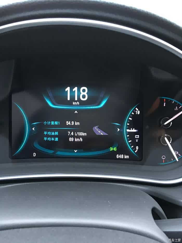 君威5月14日上好牌照至今,26天已行驶2700多km,感觉动力强劲,吸睛无数,好评不绝于耳。尤其是在高速公路上,加速时的推背感爽爽的。油耗不算高,最好都开进了6.7,动力与油耗很满意。1.59吨的身躯在高速上相当稳定,内饰棕红色坐椅真皮显得运动、时尚和不俗。