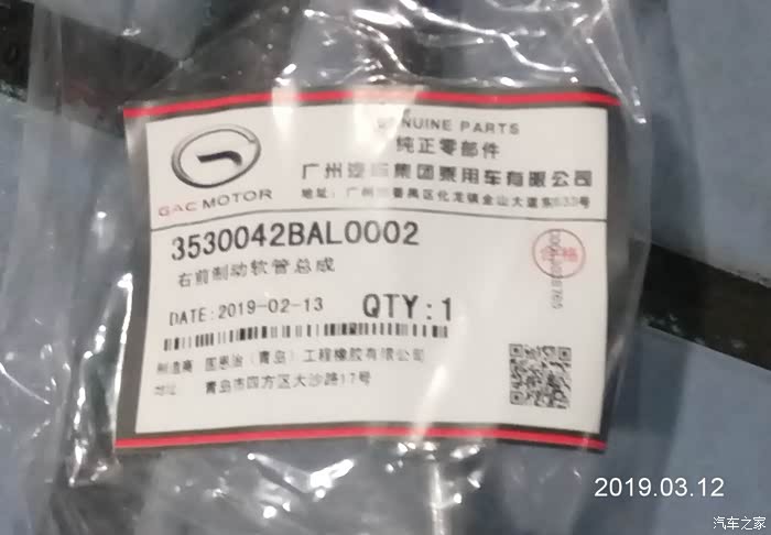2、制动软管升级(更换左右前制动软管总成,添加制动液)。