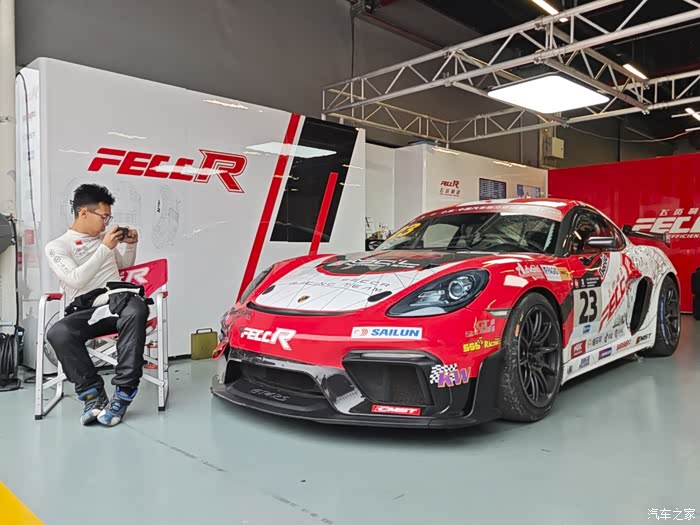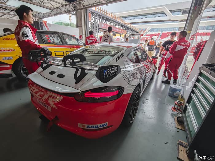 言归正传啊,因为我们是正赛两天去的,所以呢,我们看到了正赛的第一轮回合和正赛的第二回合。CEC分成了这个GT组和国家组两个部分去进行。在GT里面有我们非常熟悉的涛神,这次他也是以飞资车队的车手出赛,然后开了一台今年新设立的组别叫做GTL组,他的赛车是由718的这个GT4 RS改造而成,非常轻量化的改装,那动力基本上都是原厂,没怎么动,主要是做了轻量化和一些赛事合规的改装,