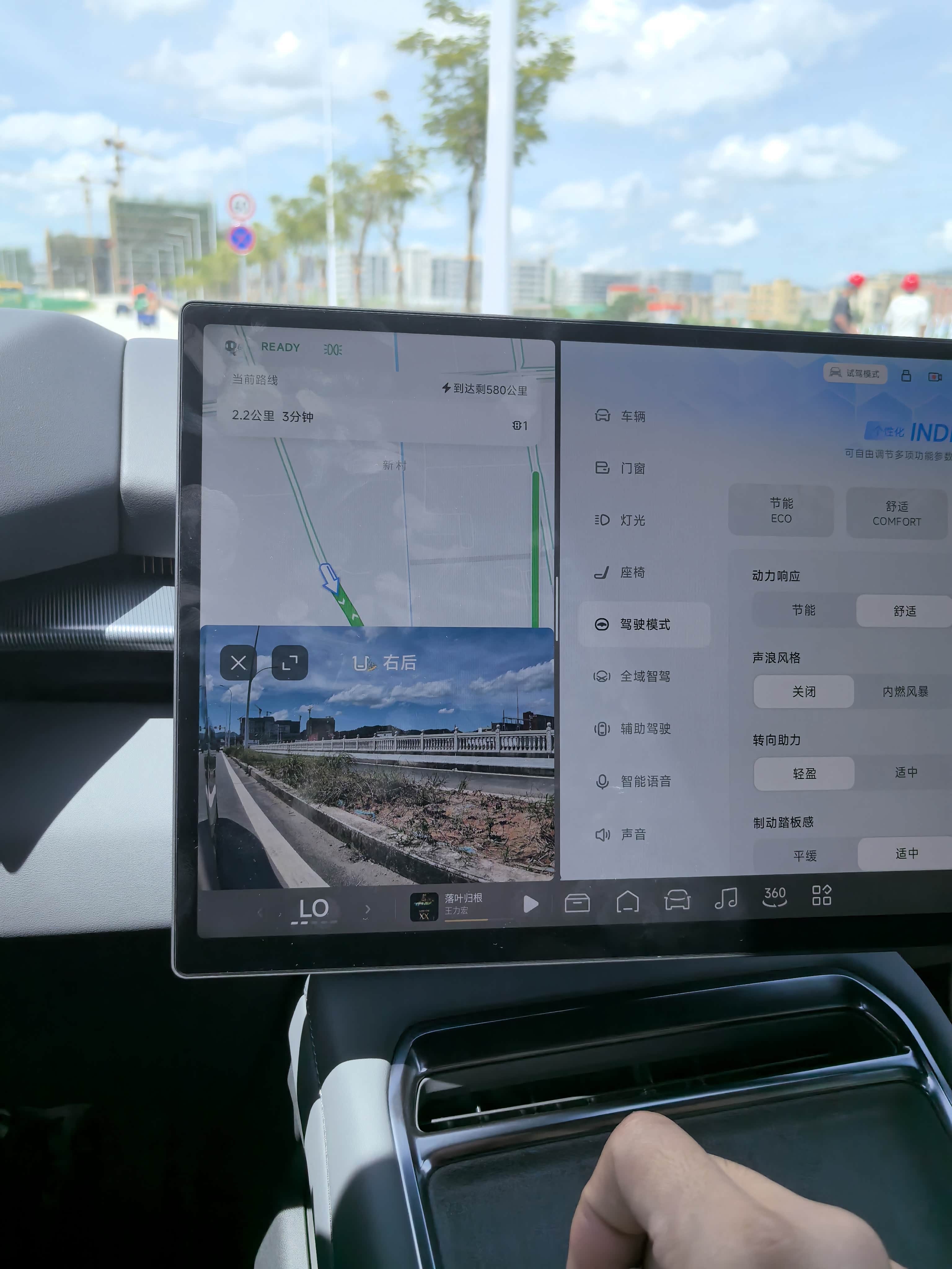 ①该车动力提速非常明显,不管是舒适模式还是节能模式,它的提速都非常快,没有任何顿挫的感觉,遗憾的是因为试驾的是顶配车型,车企不允许试驾性能模式,性能模式的驾驶感受我希望后续车友补充下。
