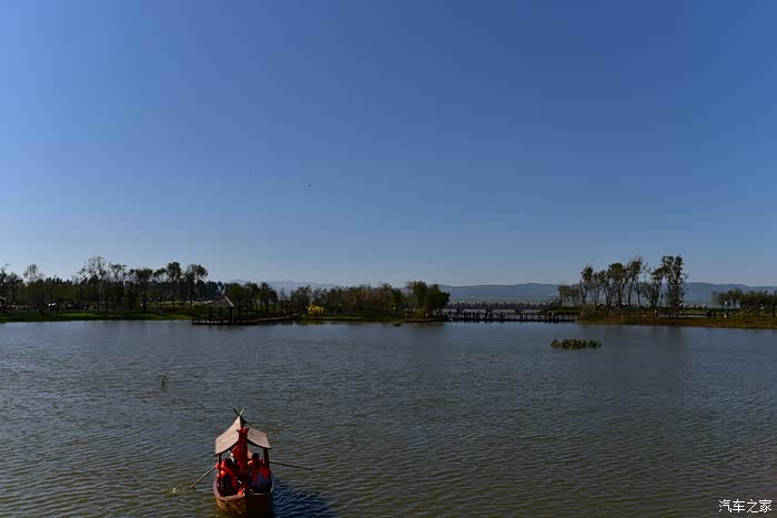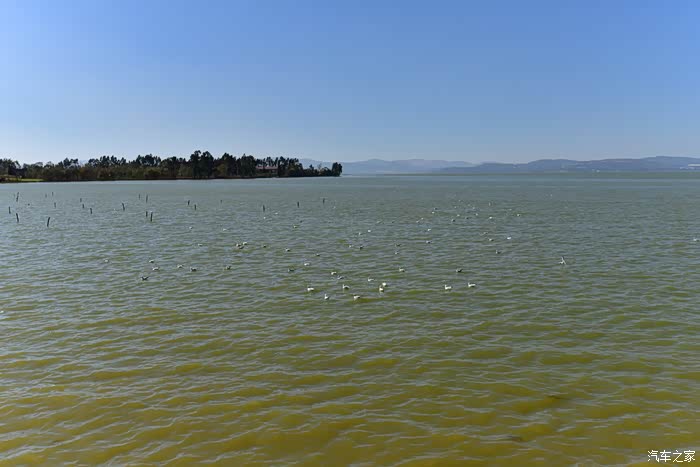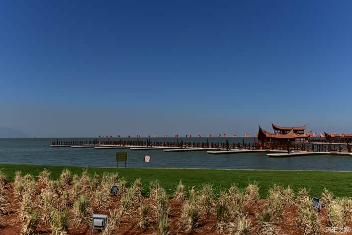 滇池这边的水质看着还可以,悠悠过来一张游船