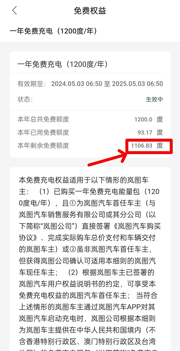 我早在51节的时候就在岚图app商城里用积分兑换了一年1200度免费充电权益,也正是为了接下来一年出游而储备。