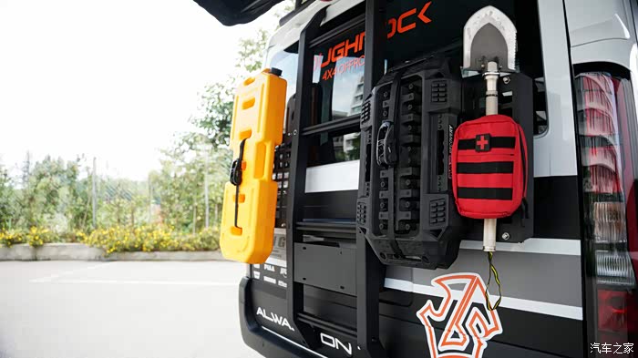 配合车顶平台肯定要有爬梯了,也同样做了拓展功能,可以挂水桶啥的