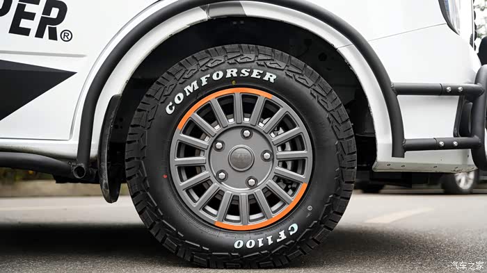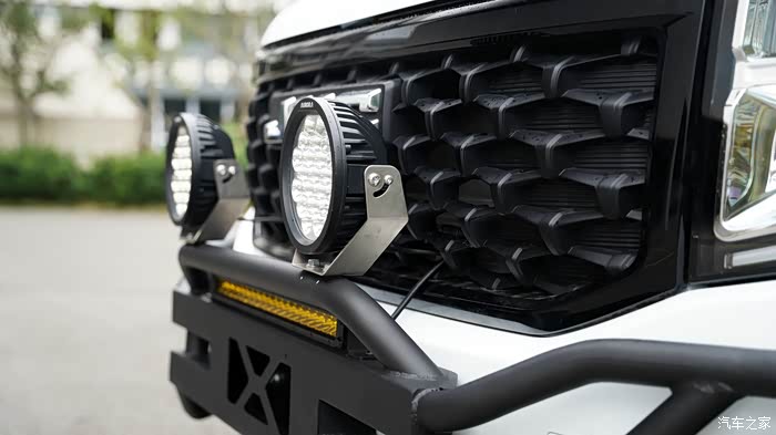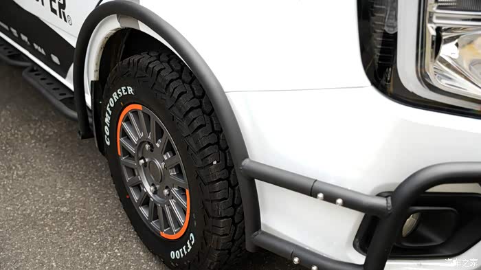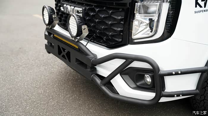 前杠用圆管做的,强度高些,考虑户外露营也许会遇到复杂路况,防护还是需要做好