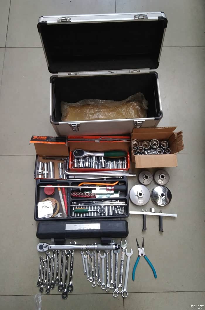 二、计划操作步骤和准备的工具和材料<br/>1.下面是计划准备进行的具体操作步骤(冷车操作):<br/>事前准备工作,要把电瓶取下并移到后备箱并和先前自己装的超级电容并联,并把电瓶托板拆掉方便拆管操作。<br/>(1)拆发动机右边下护板,放接液盆在变速箱油冷器管下方;<br/>(2)拆变速箱油冷器7号接头,防冻液会下流入接液盆中,此时再把膨胀壶盖打开加快放液速度;<br/>(3)在无液流出后把高压气枪口包上干净湿毛巾从膨胀壶盖口密封好放气冲刷,会有多余积液排出;<br/>(4)取下节温器出口到连接水箱进水管的接头,把水管放低,并用高压气枪从水管口冲刷余液(变速箱油冷器内积液冲出);<br/>(5)取下节温器上暖风水箱进出水两根管3号和9号接头,取接头时注意用小盆接液并记录流液情况,用高压气枪接水管放气冲刷,注意流液情况并做记录(暖风水箱内积液冲出);<br/>(6)堵住3号和9号接头,从除气钢管4号处用高压气枪放气冲刷(发动机内积液冲出);<br/>(7)把特氟龙管从暖风水箱出水管对应钢接头3号处放入插到底(先大概量下长度确定能插到水泵处并用胶带做个记号)用注射器开始抽发动机水泵处残液(发动机水泵处积液吸出);<br/>(8)拆下节气门,取下节气门处2个水管接头,倒出节气门内积液,顺便清洗节气门;<br/>(9)把机油冷却器下部的水管取下放出残液(机油冷却器积液);<br/>(10)装回所有水管,从膨胀壶倒入蒸馏水至标记处,启动发动机进行管道清洗,并不时补蒸馏水,至散热风扇转动水温正常后熄火(蒸馏水清洗水箱);<br/>(11)等冷却20分钟后重复以上放液过程,察看蒸馏水的颜色情况,如基本无色即可放清洗蒸馏水并加入新的防冻液到标记处,启动发动机并补液,否则重复蒸馏水清洗过程。<br/>最后装上发动机右下护板。<br/><br/>2.准备的材料