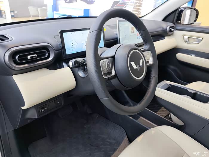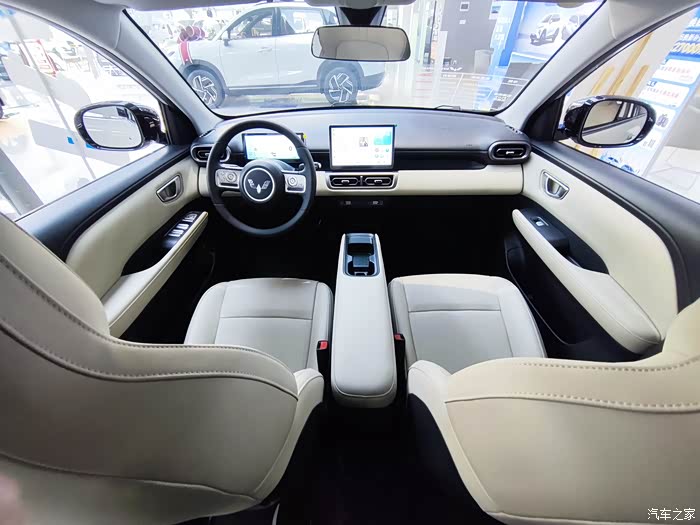 于是我们又到了五菱的4s店,当我们进入五菱展厅,看到缤果SUV这款车的时候,发现这款车的续航里程比星愿整整多出100公里。而在价格方面也比那款星愿优惠很多。这款大五座拥有510km续航里程的缤果SUV只要不到9万的价格就可以拿下了,最重要的是从订车后大概一个星期左右就可以提车了。从车辆大灯上看,缤果SUV一字型的前大灯与后尾灯组合。辨识度也比星愿的高。而且在前排的设计上,缤果SUV也比星愿的要好很多,毕竟缤果SUV,可以直接从副驾那边走到主驾这边。这样的设计对于经常要停靠在狭窄的地方来说,优势还是很明显的。