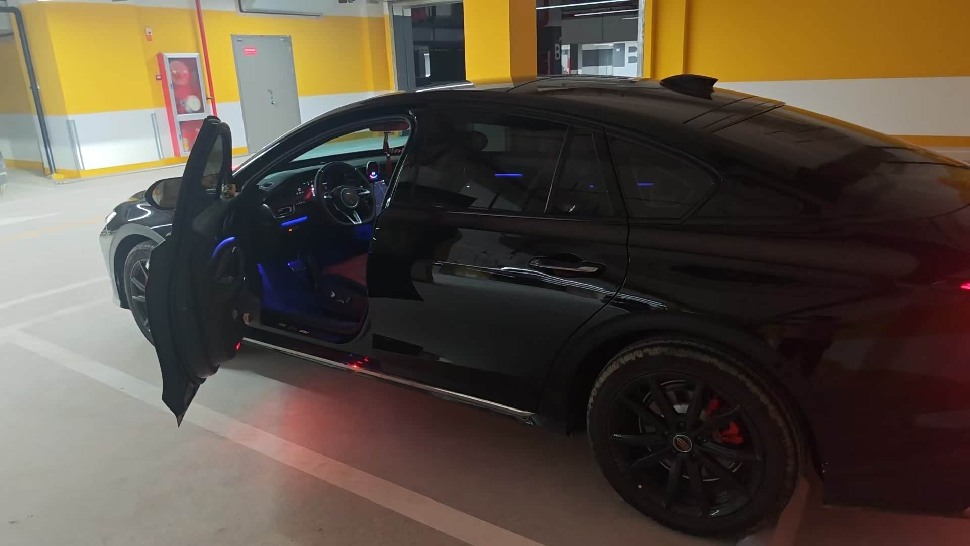 车尾设计将豪华感推向高潮。384颗LED灯珠组成的贯穿式"羽翼伸展"尾灯,点亮时的动态流水效光彩夺目,与微微上翘的小鸭尾扰流板形成优雅呼应???。中置双出的金属排气口或双边共双出布局,在细节处彰显性能底蕴,而掀背式尾门则让实用与美感达成完美平衡???。