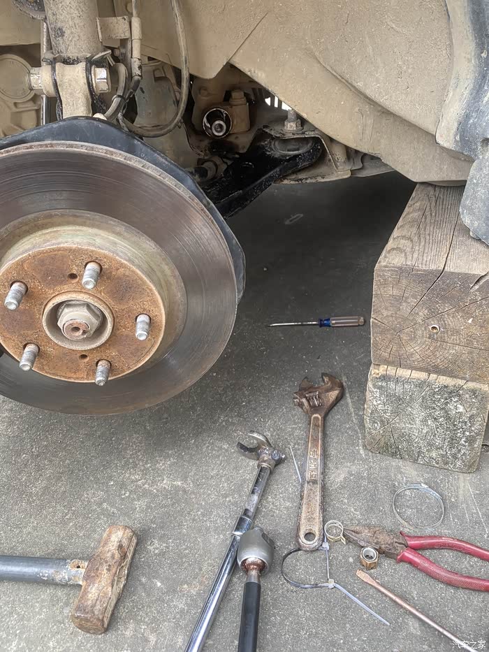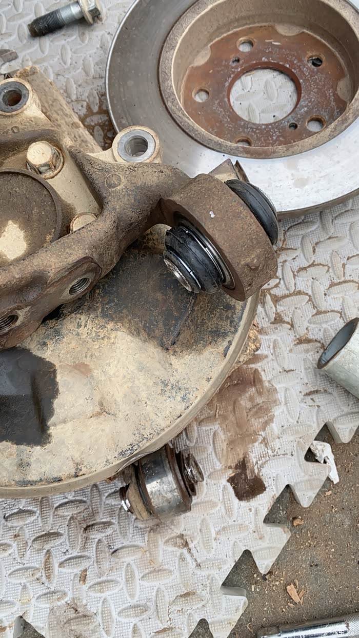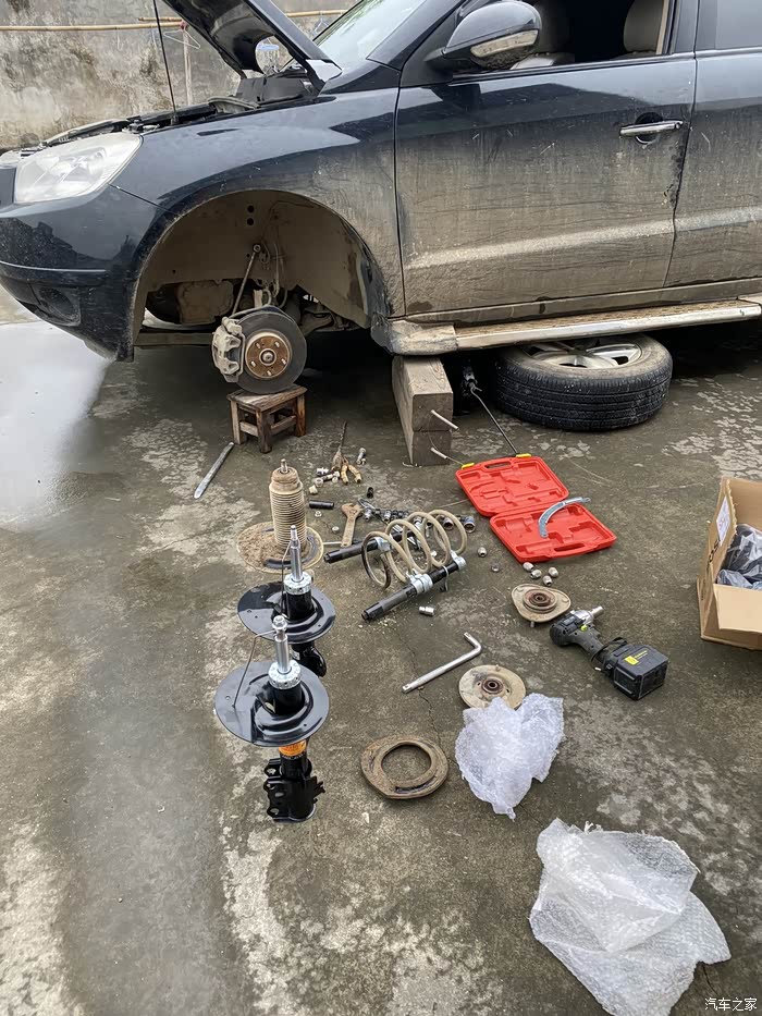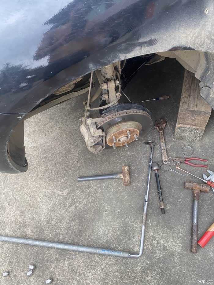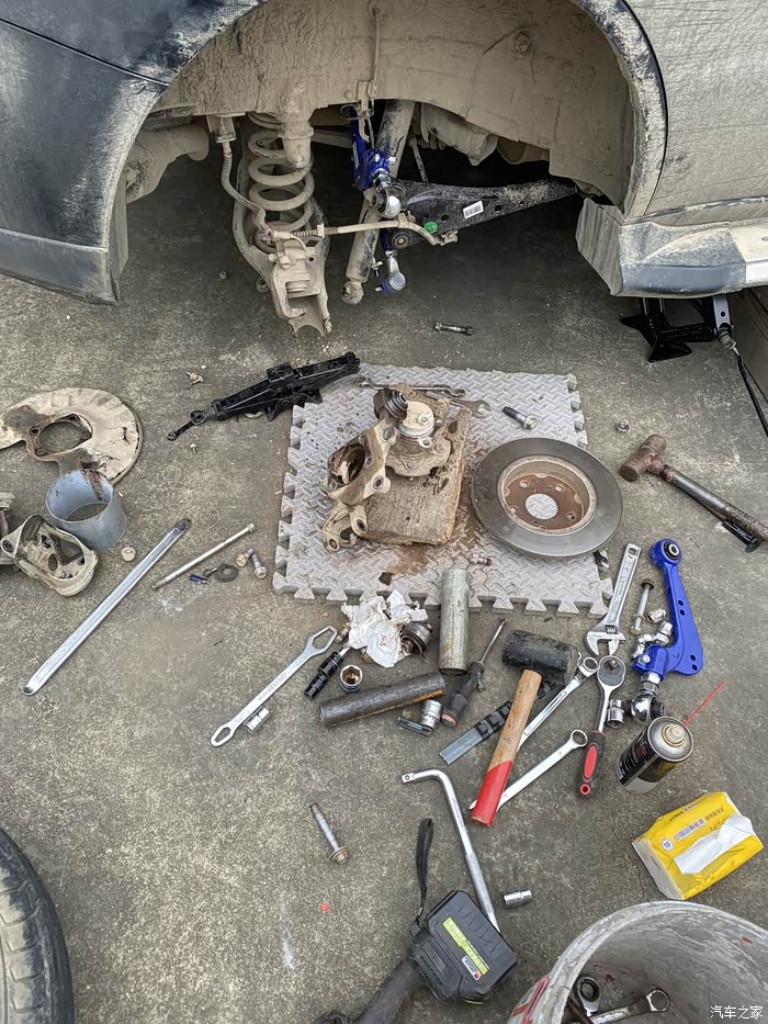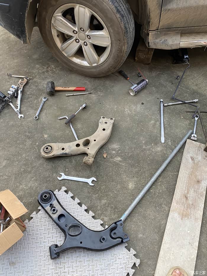 先是车子跑偏过弯甩,过坑甩尾,避震顶胶,倾角束脚,摆臂羊角胶套全部坏了,越检查问题越多!囊中羞涩索性全部换总成,找人压胶套收费很高!自己买配件自己一个一个换