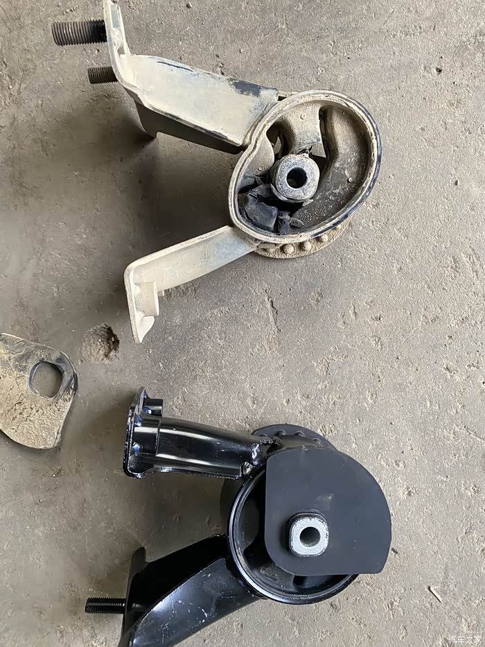 顺便换了机脚胶,原来的裂了,然后那天拆摆臂螺丝拆不下用千斤顶垫木头顶油底壳上来,可能搞到变形了