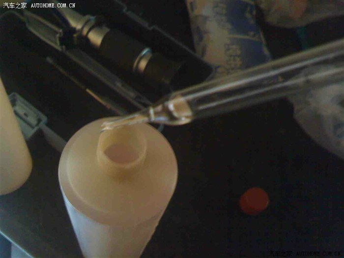 10、用屈光仪检测抽出的电解液比重。我的经检测,比重是1.30。但我所处地区不寒冷,我就准备把电解液比重调成1.28的标准值附近就行了;并且经过下一步的充放电,比重还会稍微上升;因此必须得掺入蒸馏水进行稀释。