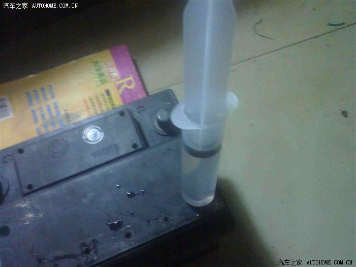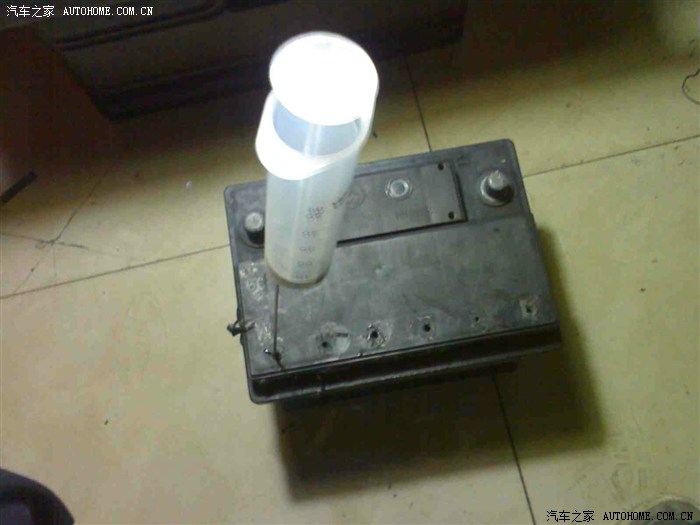9、把电瓶简单检查一下6个孔内电解液分别的比重,不是差距很大,就不需再调整。我这个由于用蒸馏水冲洗过一次,经检查必须补酸。不转灯的原因就在于此。经计算: