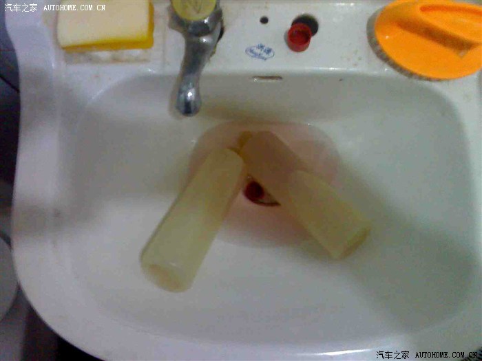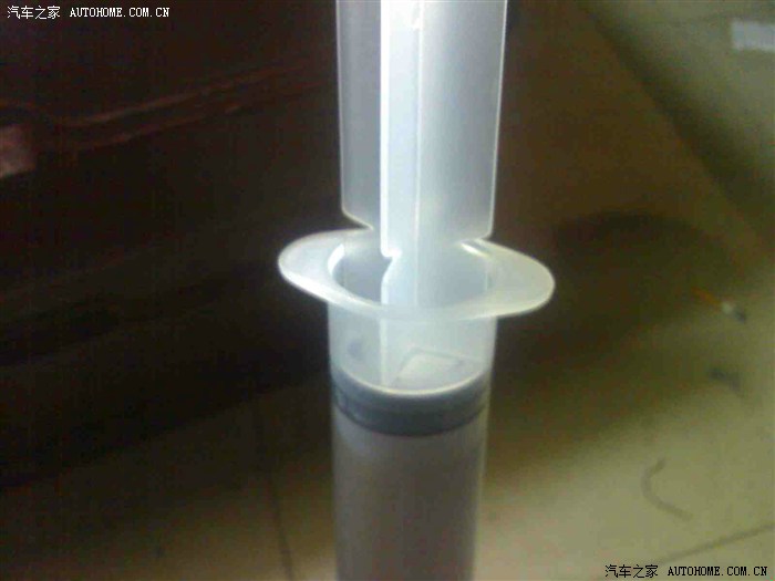 7、把塑料量杯拿出来,放入到脸盆中放好; 把抽出的电解液慢慢推入到量杯中,每一杯做一次计量,记清楚抽了几杯,多少毫升的数。需要提醒地是,不要把针头也拔出来,只要把注射器本体取下就行了。免得多次插入伤着里面的电板。虽然电解液有腐蚀性,但因为淡,不太要紧。万一手上沾上了,清水冲一下就行了,不会烧伤的。最好戴个手术橡胶手套。说个题外话,大家看这管子里面抽出的电解液颜色和我倒掉的那不知道啥水水的颜色是不是基本一样?见下图