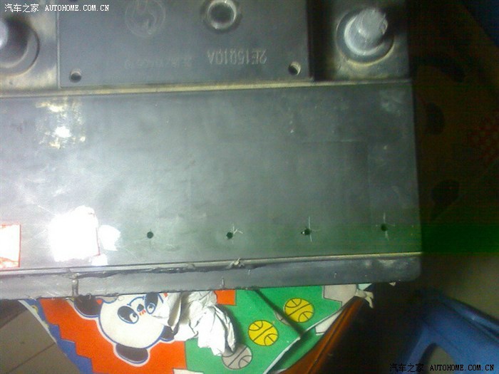 1、撕开电瓶上面的标签,仔细在电瓶上面上找6个小圆的痕迹,然后在6个小圆的中心用尖状物定好中心点,用锤子把螺丝刀从小圆的中心向下打,直通电解液储液室。见下图