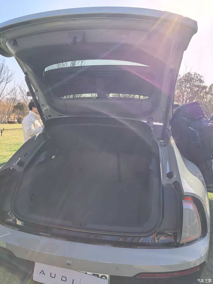 奥迪E5 Sportback前备箱不是很大,放个小背包、充电枪这些小件刚好够用;但后备箱空间特别给力,溜背造型一点没耽误装东西,日常家用完全够使。充电口特别智能,手轻轻一碰就自动弹开,不用弯腰找开关,特别方便。