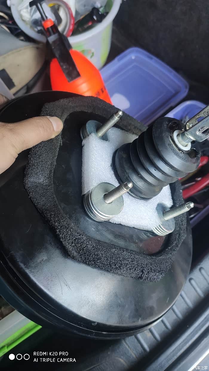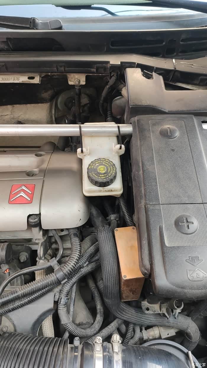 这里说一下,赛纳油壶液面传感器插头跟307的不一样,最简单的处理方式就是剪断重新接线,不过我采用的是无损方式,我发现赛纳的插头跟喷油嘴插头一样的,于是我就买了一个喷油嘴转接线的公头,做了一根转接线。没有拍照,脑补就行。第二个问题就油管需要掰一下,掰到适合307总泵油管接头的角度。这个总泵接头跟赛纳的一样的,外面m10,里面m12,原装位。(有些307的这两个接头可能不是这个规格,需要转接头)第三个问题就是这个大鼓是10寸的,位置有点挤,需要注意一下别磨蹭啥东西。