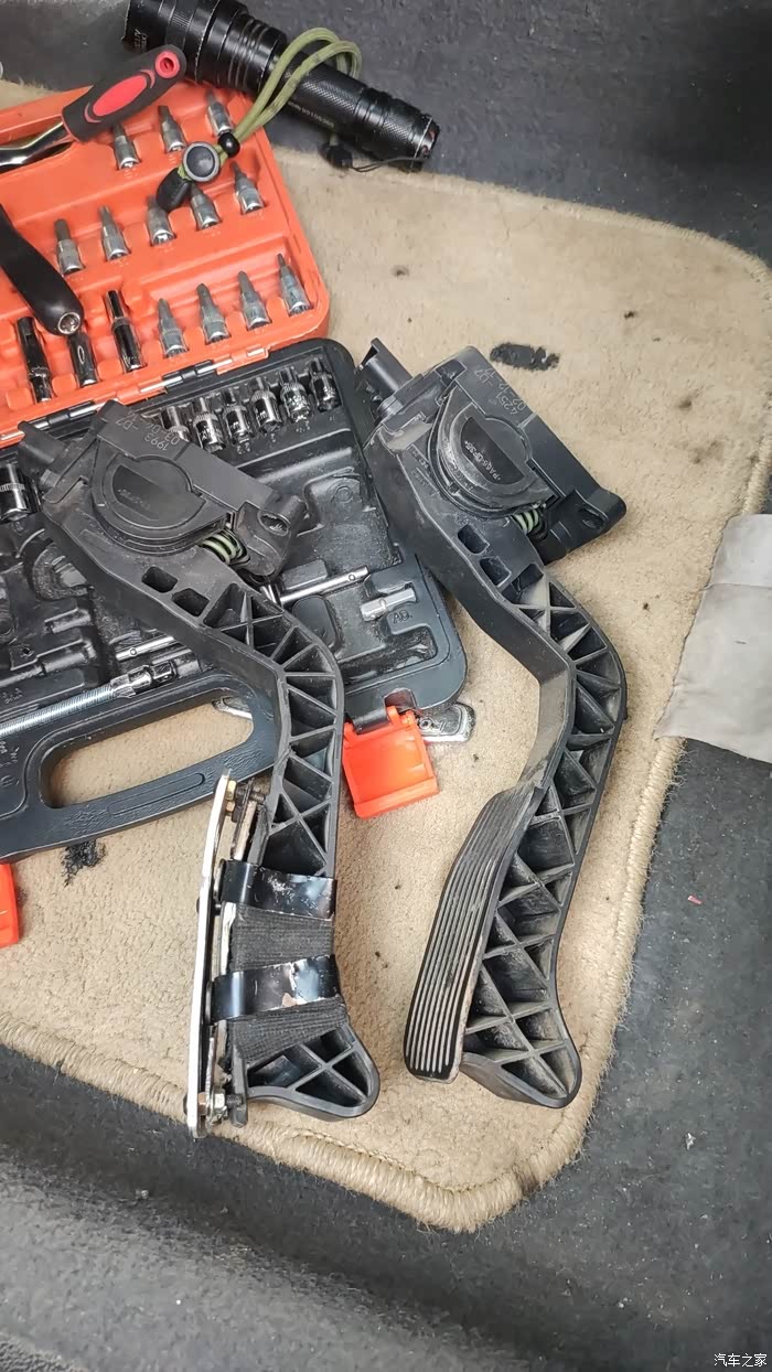 最最后,补充一点点,我的垫圈还是少垫了一个,现在踏板比原厂稍微高点点。所以我更换了一个油门踏板,这个踏板比车上的稍高,于是油门踏板与刹车踏板高度差维持原状。