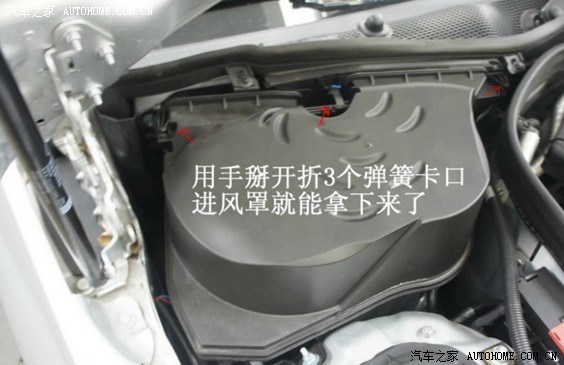 我的操作是:空调外循环风力最大,打开机盖,拆除风罩,直接从送风系统喷入除味剂。这里忘了拍照,借用下网上的图片