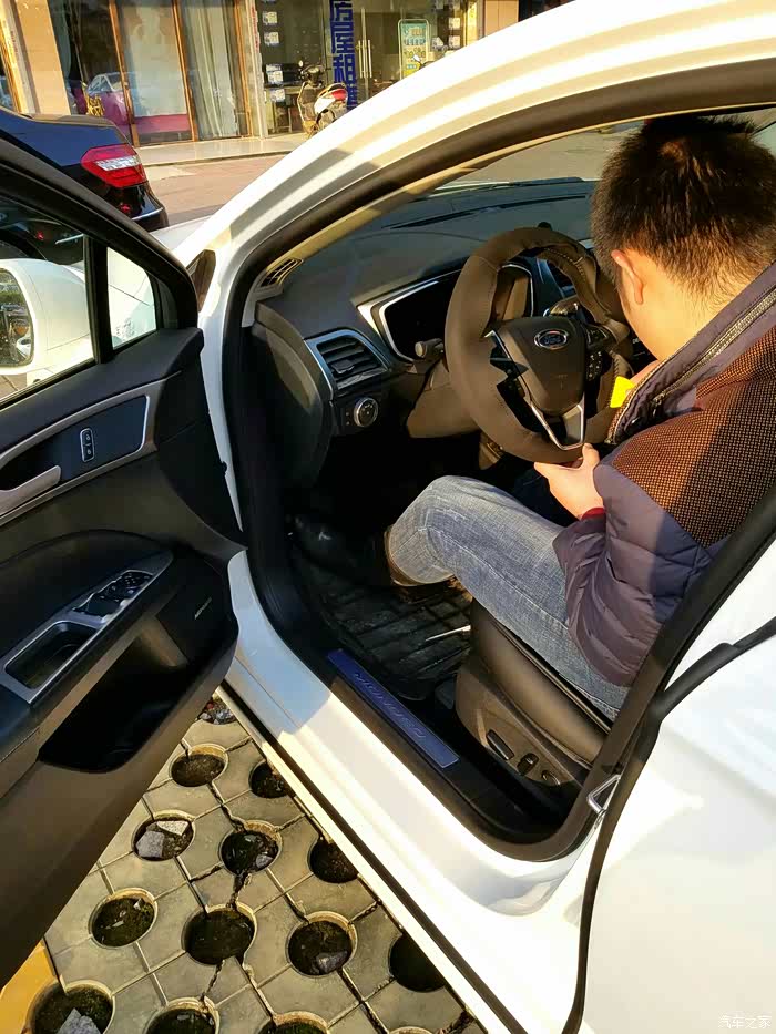 买车是每个男人的梦想,从小我就喜欢奔驰,长大也喜欢奔驰,虽然我还不大,1995年的,自己出来工作也好几年了,现在和朋友一起搞个小公司,从2015年开始,我做梦都想要有个车,那时候喜欢奔驰GLA,但是没有驾照,今年一开年,我就报名学习驾照,自己平时工作比较忙,3月份学到2016年12月20号才拿证,说这么多废话,开始说说正式选车开始吧,最初预算30万,去奔驰4s看了GLA,然而突然的发现旁边的C200,然后就这样入迷了,不可自拔,谈价格,优惠一万,没现车,等4-6个月,价格落地都要33多,超预算,尽管我真的很喜欢,但是理智上,我还是放弃了,经朋友介绍,去看了ATSL,然后又陷入泥潭不可自拔了,看车订车2天时间,BOOS音响,280马力,双出大排气,6的不要不要的,交了定金第三天,销售告诉我,因为我户口是杭州的,限牌城市,我无法在合肥当地上牌,经过周折,只能退定金,刚好边上有家福特,进去看了下,那时候17新蒙还没上市开始卖,对,没错,我驾照还没拿到手,就已经开始订车了,中间很多细节,就不说了,不然说明天早上也说不完,后来新蒙迪欧17的上市了,4S也有展车,果断去看车,去的距离小区最近的一家福特4S,本来定豪华运动版,可是没车,年前不保证到车,退而求其次,定2.0豪华,优惠16800,看车订车当天2小时搞定,交材料批福特金融,第二天告诉我审批通过,当时我在外地,隔了一天一大早就去刷卡提车,是现车,可惜没有珍珠白,提的典雅白,手续办了一上午,保险交了12000多,说到保险心里一万只**在奔腾,太***坑了,比外面贵那么多,幸好只是买一年的,买完保险办临牌,提车走人,走之前销售给我捆了两个红丝巾,并没有什么姿势,也没人欢送,4S送的脚垫,坐垫已经全部扔了,都是垃圾,下面上图吧,不然大家都不想在看了
