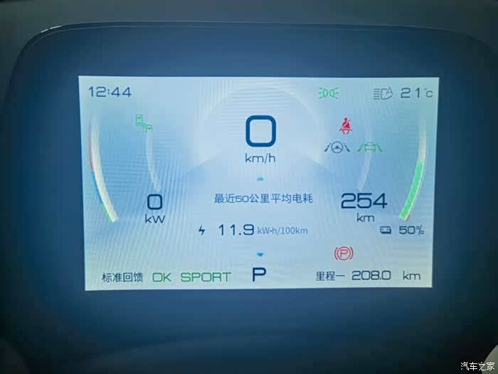 到达目的地,续航还剩余50%,已经行驶了208公里,要知道我的元PLUS是510公里的版本,意味着续航消耗掉256公里,折算续航折扣率就是:208÷256=81%,相当于续航打了8.1折!