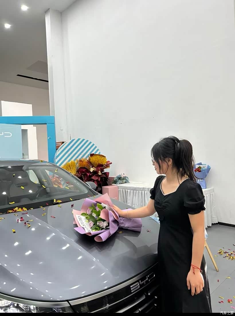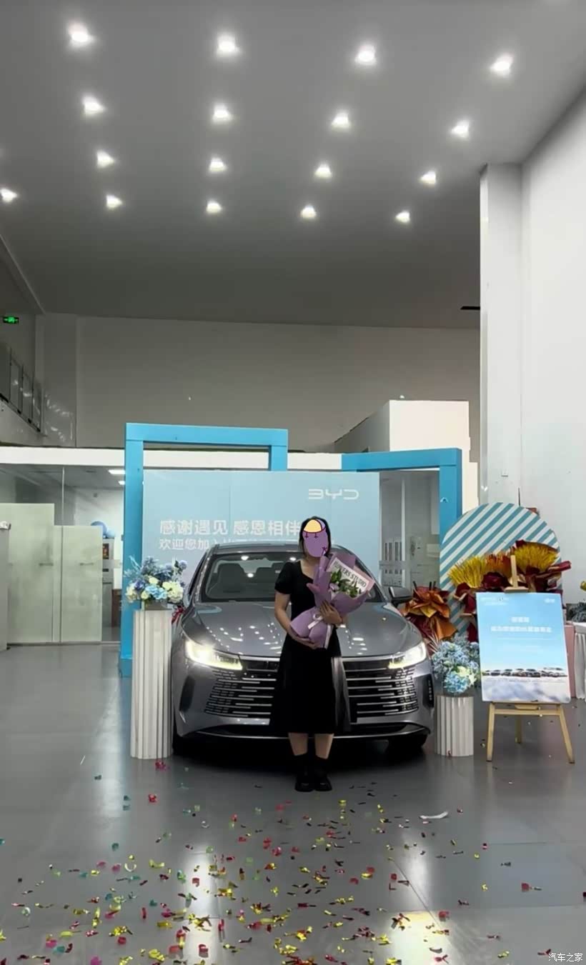 在这里工作了一段时间,存了一点点钱,我还在考虑要不要存够钱全款买车,店里的一位同事告诉我:“如果你已经想好此刻买车的用途,那就去买”,店里一直有流传一句话“早买早享受,晚买享折扣”,这些点醒了我,外婆已于我高中时期离世了,我不能再让爷爷奶奶等了,那就买。坚定了买车的想法,那又该买什么品牌的车呢,像吉利,奇瑞等都有新能源汽车,但基于我在比亚迪4S店工作这么长时间以来,观察了很多来买车的客户,他们也都是比较了各品牌的车之后最终确定来比亚迪提车,认为比亚迪新能源车最具性价比,根据我自己的资金情况以及店内销售同事的推荐,我选择秦PLUS或者驱逐舰05,正好店里有台被遗忘的库存车驱逐舰05,价格相对优惠些,和领导商讨好价格后,于是当即分期贷款提车,友好的同事们给我准备了特别的提车仪式。2024.06.30这天我很开心。