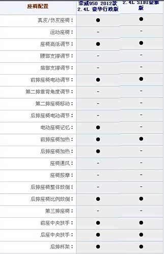 荣威950有5款车型,而别克君越有10款车型,两款车均提供三款发动机,其中两款2.4排量和3.0排量的发动机是一样的。不一样的是 950低配是2.0自然吸气发动机,而君越是2.0T涡轮增压发动机。荣威950低配版本搭载的这款2.0排量的发动机,价格上虽有诱惑力,但是对于驱动1.7吨重的950来说,绝对是属于小马拉大车了。相信只有那些要面子的人才会选择。君越2.0T和两款车型共同搭载的3.0升V6 高配车型也不是销量的主力军。这里我将对两款车共同搭载的2.4升车型做配置上的对比,相信他们都会是销量的主力。让我们看看谁更具性价比。