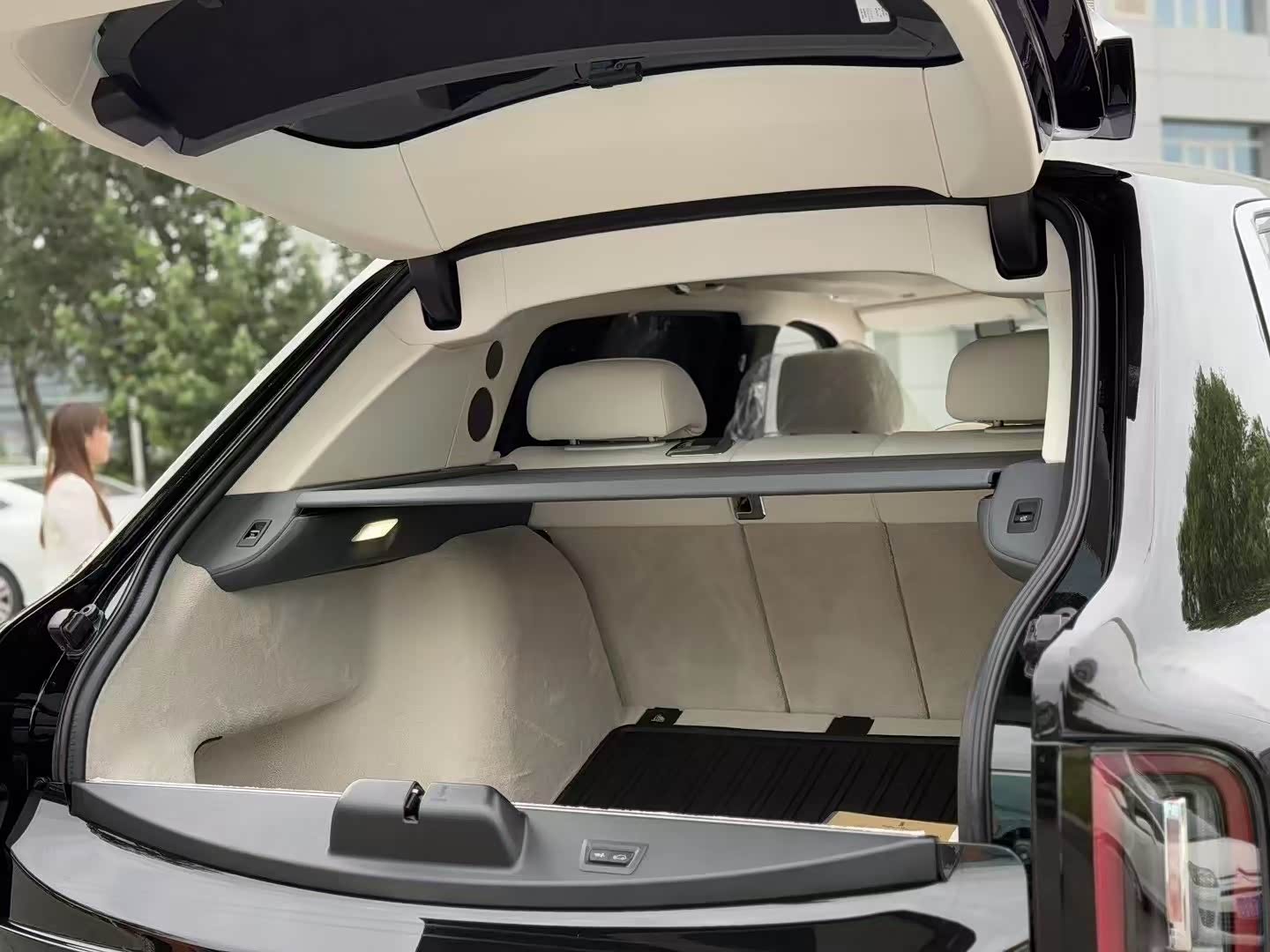 劳斯莱斯库里南后排两个独立座椅之间设有后排中央固定扶手,可容纳带有劳斯莱斯威士忌酒具的酒柜、香槟酒具和冷藏箱,为后排乘客带来旅途中的终极享受。整体造型依旧充满力量感。尾灯造型相比全新幻影更加方正,环状的LED灯带内部镶嵌着带有双R标志的装饰,更显精致。