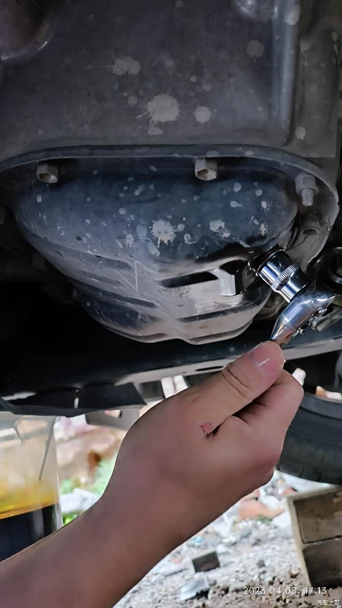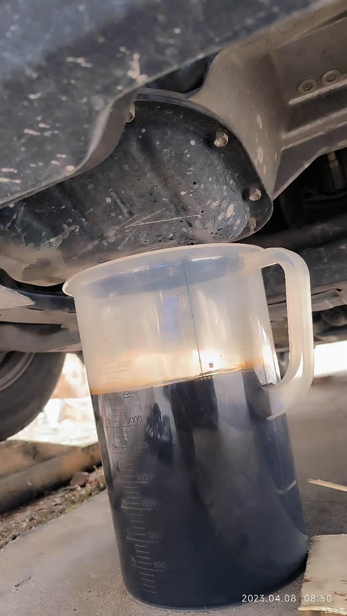 开始放机油:美孚EP0W-20下车,6个月行驶8800公里左右,实在是最近连续下了大半个月雨,天气晴朗马上动手