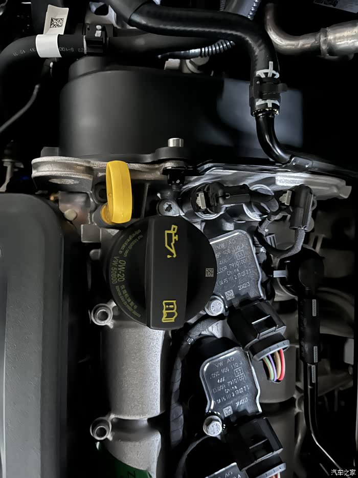 机油盖上有标注,0W-20的