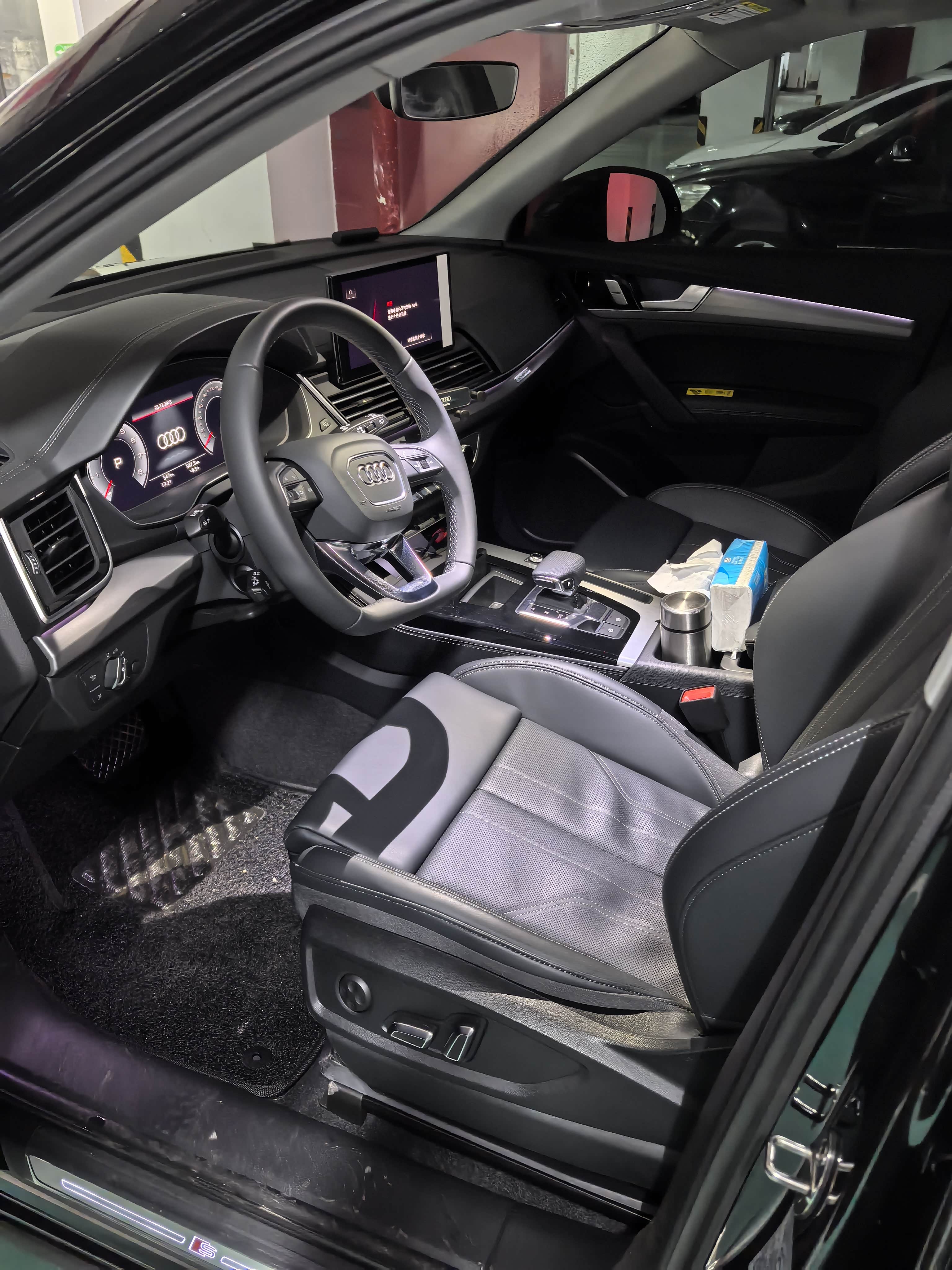整体还是很满意的:1.空间大。之前的小车是1.6排量的轿车,一家人坐的时候有点拥挤,现在换了q5,又是suv,轴距达到2.9米,家人都夸空间大,后排甚至可以跷二郎腿。2.稳,噪音小。开到100码,车内的噪音小,而且加速很快,深踩油门还有劲,变道底盘很稳,给我安全感。3.氛围灯很有仪式感。晚上开启氛围灯,听着音乐很有感觉,下车开门时还有迎宾灯(后排两个门也后加装迎宾灯),氛围感拉满。