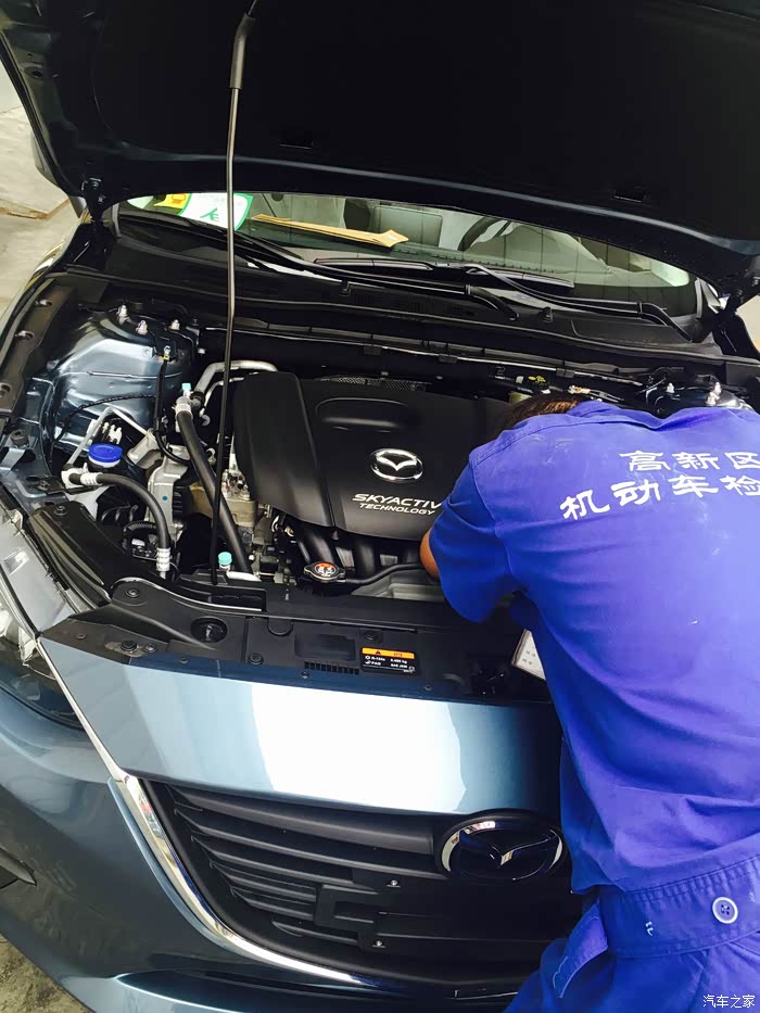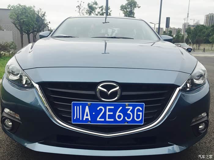 通过手机地图确定了距离最近的长马店,于是直奔机场路。这边的品牌也超级多。但是都下午5点了,直奔主题吧!带着我妈和我女朋友走进4S,展厅里全是昂克赛拉和CX-5,伴随着一幅幅《奔跑吧!兄弟!》和《爸爸去哪儿》的赞助海报,我这酷爱看娱乐节目的女朋友已经对长安马自达产生了好感。而我的目光已经停留在了右边的几辆昂克赛拉身上了。无论两厢还是三厢,这魂动的造型!美哭了!弟弟并不逊色与哥哥阿特兹啊!打开车门坐进去发现内饰也甚至比阿特兹还棒!抬头显示和悦联系统的旋钮很有档次!做工也很细腻,比印象中的长安装配代工水准好多了。这辆1.5L自动豪华版的展车配置基本都完全满足了我的需求。当时店里的车不少,颜色,三厢两厢中高低配基本都有,我妈建议上2.0L,可是唯独2.0L没有我中意的星际蓝配色,其实琉璃棕和炫亮银我也挺喜欢的,最后选择星际蓝的原因嘛~我是切尔西球迷呀哈哈哈(我车求保级。。。