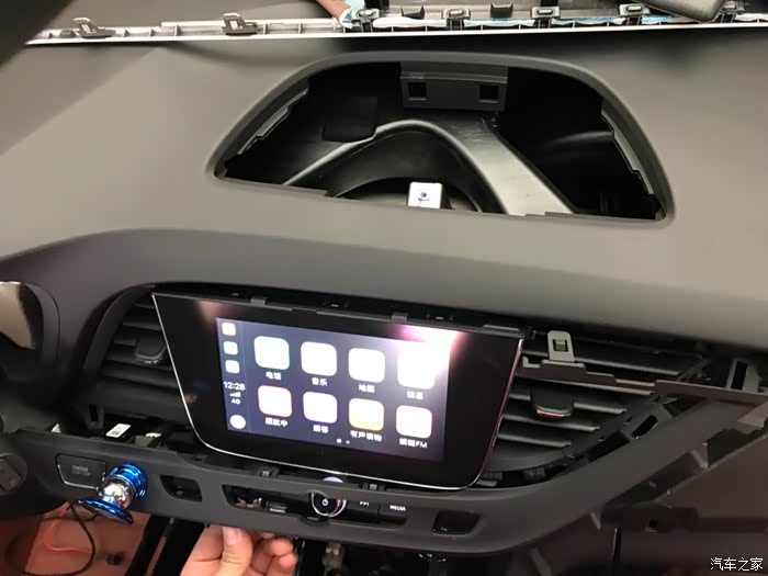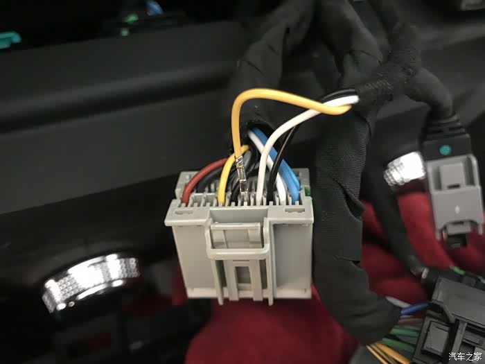 第二步:中控面板分三个配件:主机屏幕、启动按键面板、右侧皮面板;从右往左拆,一点一点翘着拆,详细看下图,先拆掉右侧皮面板,然后拆启动按键面板,会看到固定主机屏幕的四个七号螺丝,拆掉!轻轻取下主机,启动电源关掉,然后拔掉后面的一个20Pin灰白色插头(照片忘记拍),信号线的Pin针按黑白黄顺序排列,分别插入插头第一行左数第3,4,5槽位。信号线插到位后能听到被卡住的声音,如果插反了它是卡不住的。保险丝取电,在仪表台左侧饰板翘起来,右数第二列,取下第二个5A保险丝,插入取电插头里,再将线束取电接头插回保险盒。注意:从保险盒过去主机插头的这条线注意绕开下面的转向机,和原车其他线束绑在一起,前面的工作基本就是这些。