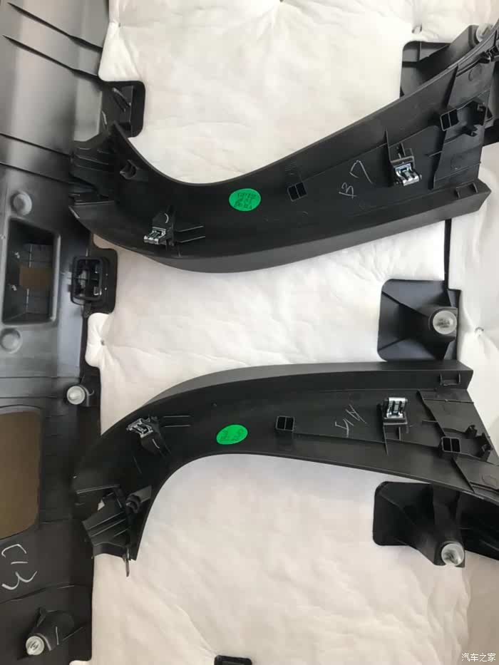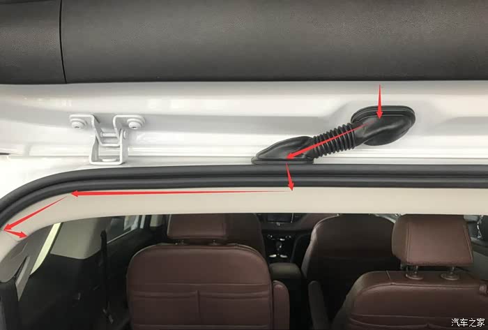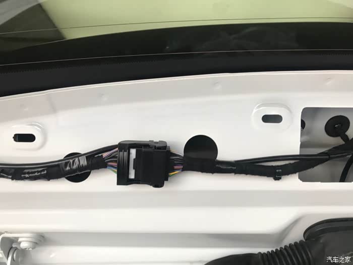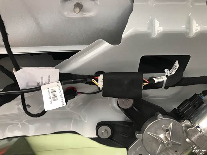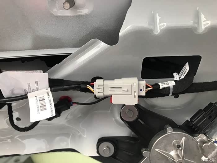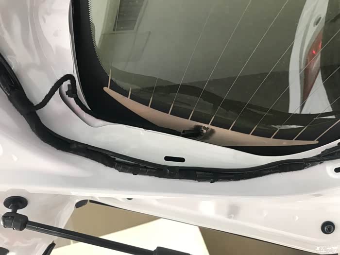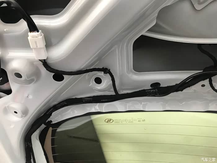 第三步:后尾门分六个配件:尾门电子开关、黑色塑料衬板(五个小部件),先拆后尾门穿线管上面的那个黑色长方形的黑色衬板,然后拆左右两侧小衬板(拆掉黑色长方形衬板会看到一边一个塑料卡子),然后拆关尾门的扣手,用翘板从上面缝隙插进去往下一压就拆掉了,然后在拆黑色最大的衬板,拆掉之后拆尾门电子开关,翘板撬两侧就拆掉了。接下来就是布线,每间隔10cm固定一下,摄像头的插头插完,用海绵包裹一下固定,以免出现异响。摄像头线束我是从上面车门皮条密封处走线,主驾驶的这一侧,走线的时候把密封条上面拆掉就行,一边拆下皮条一边走线,一边走线一边安装皮条,安装完之后,重新检查一下密封条是否安装妥当。