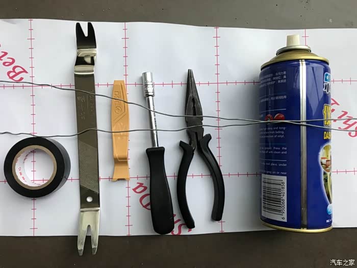 工具:七号套筒/扳手,一条细铁丝(穿线),一个铁翘板和一个塑料翘板,一条毛巾(保护档把位置),一瓶表板蜡(穿线润滑作用),一把尖嘴钳。