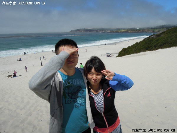 停车的地方走不多远(慢慢的溜达20分钟就可以到沙滩),老公穿着短裤有些凉,需要有个外套,毕竟不是吃牛肉长大的,还是不一样,那可是8月的加州啊,后来到拉斯维加斯有种火焰山的体会,隐约又特怀念这里的清凉。