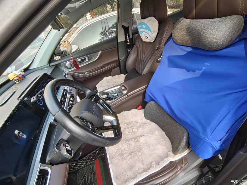 坐垫我自己嘛,凑合凑合就行,虎8有座椅加热功能,可艾5没有啊,买回来的时候就有一套四季坐垫,我不想换了,我是热血青年,能扛得住
