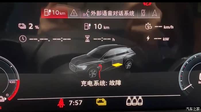 星星的设配连接充电桩,奥迪的设备连接etron,以便查明问题。测试中出现了充电故障,三方都在场。后奥迪希望把我的充电桩拆回去进一步检测,我也同意了。