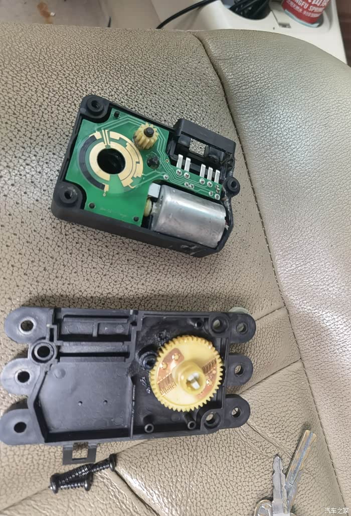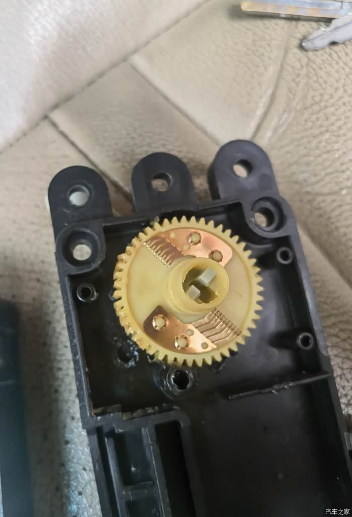 !于是我就熄火,然后把这个电机又拆下来了,上点高清图,感谢网友回复,自己完全不懂这些只会拆,昨天还特地哦弄了很多黄油在上面,看着齿轮又没坏,但是3颗带蓝色油漆的螺丝一装,再用手转动灰白色的轴就齿轮的声音,打开盒子单单转没声音!!