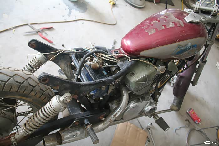 决定买车后,就开始在各个交易平台上找车,我的要求不高,只要不是单缸车就行,个人觉得单缸车实在没什么可玩性。本来打算买辆二手车,但是看来看去,发现能看上的车,价格都接受不了,价格便宜的又不符合条件,由于手里没有太多闲钱,所以不想在这上面花太多钱,导致我差点又放弃了买车。正在我纠结要不要买的时候,我在网上找到了一辆符合条件,但状况很差的车,价格能接受,是一辆雅马哈天王太子车,不知放置了多久,需要彻底的翻新,维修才能骑,没办法,为了省钱,只能多花点时间来折腾它了。由于本人是修汽车的,所以才有信心把它翻新改装好,而之后的翻新过程,也是状况不断,各种折腾,好在我坚持了下来,并且最终的结果也基本达到了我的预期。好了不再多说,大家看图。