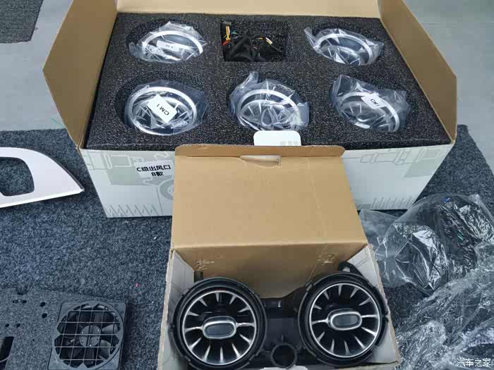 这是这次改装所需要的全部配件,包括了全新的音响盖板、出风口、原厂门把手以及座椅通风所需要的小风扇等等。