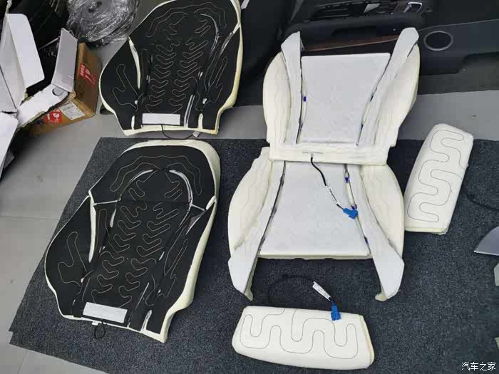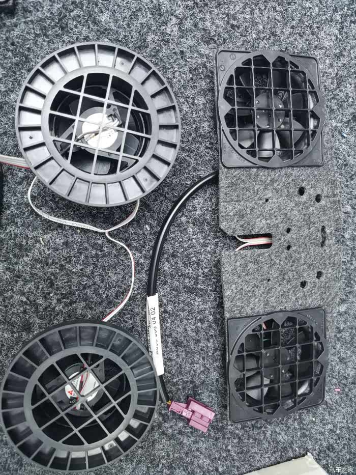 座椅通风也很简单,就是在座椅下面和背部加上上图展示的小风扇,启动后进行吹风。据施工的师傅说改这个的人很多,有的时候一天得有七八个车都是要改装座椅通风的。