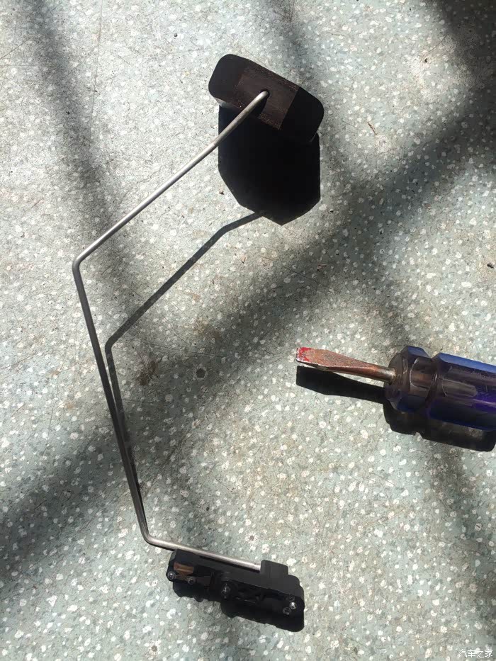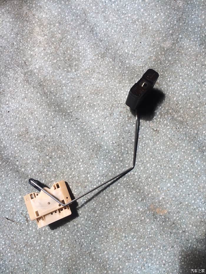 拆下油量传感器漂浮子,拆开可见电阻电极片刻度磨损严重,漂浮指示杆2点电极触点出现铜片氧化,并且触点上有氧化物!故障原因:接触不良!