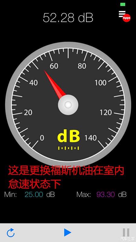 这个机油明显表示要比灰壳抗噪音能力要强一点!数据为52.28-65dB分贝左右