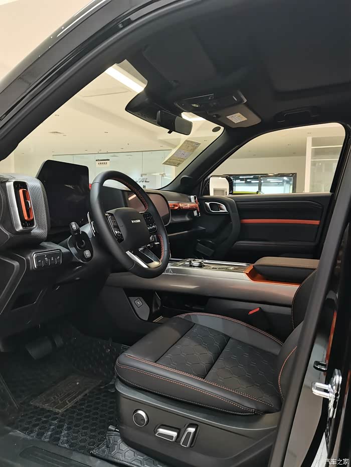 在内饰设计方面,哈弗大狗的硬派风格得到了保留。 2024款哈弗大狗的矩阵式出风口形似“巨石阵”,散发出神秘的力量感;换挡旋钮“银河环”,仿佛置身于星系探索之中;嵌入式中央大屏如湖面般平静,与操作台完美融为一体,给人带来宽广的视野与无限的探索空间;坚实有力的“丛林臂”狂野大把手,充满了原始的力量与安全感,在轻度越野或颠簸路面,为用户提供坚实的保护。