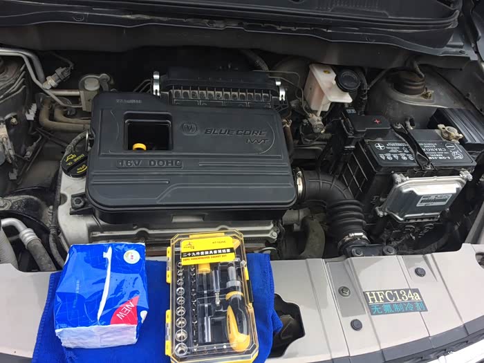 直接进入主题,如图最近感觉点火后,发动机抖动及怠速声音变大,考虑换火花塞和清洗下节气门,网购的火花塞4个将近一百块送16mm拆火花塞工具气门盖罩的拆卸比较容易,这里没有拍照,只需10mm六角套筒即可换下的火花塞用纸巾堵住各个空气进气口,拆卸节气门需要8mm六角套筒,共4颗螺丝,切记夹在节气门上的传感器,安装好后记得插回去,不然启动困难,无法轰油。拆卸下来的节气门乱喷一通,用纸巾擦干净安装回位搞定!打火启动后,怠速情况确实安静许多,没来得及路试,先发到这里啦