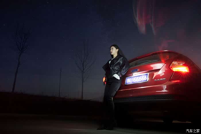 夜色里福克斯尾灯散发溢彩光晕,抢镜十足