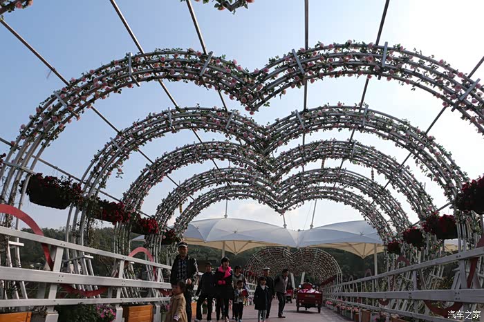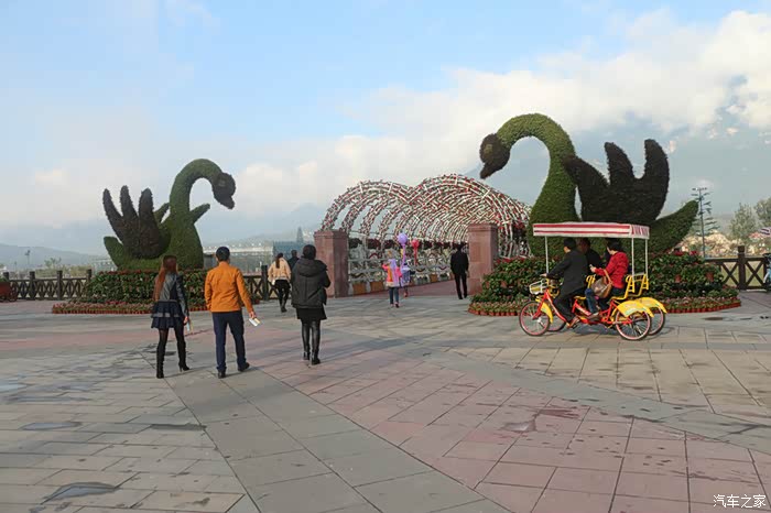 首先映入眼帘的是路面红白相间的“爱情斑马线”,红色桃心,白色的斑马线上写着红色的“I LOVE YOU”和“LOVE”的字样,爱意浓浓。穿过爱情斑马线,新修的柏油马路蜿蜒伸向前方,顺着充满浪漫气息的标识牌,穿行于青山绿水之间,几分钟便到达“爱情小镇”。坐上时尚、环保的观光车,正式开启你的浪漫之旅。“风情悦意”、“青梅竹马”、“青云花梯”、“爱情索桥”、“一见钟情”、“两情相悦”、“情定三生”、“四季花海”、“海誓山盟”……只要是目光所及之处,便是一个又一个浪漫爱情主题景点。特别值得一提的是,在横穿景区的平通河上,有上下两座造型极富诗意的桥梁“一线牵”、“三生锁”,大受游客的青睐,熙熙攘攘的游客徜徉其间,流连忘返。中午,景区内的餐厅更是为游客备好江油肥肠、蝌蚪凉粉、圆子汤等江油的经典特色小吃,让你在欣赏美景,感受浪漫爱情的同时大饱口福!HAHA 接下来我们来欣赏下爱情谷里的部分风景吧~~