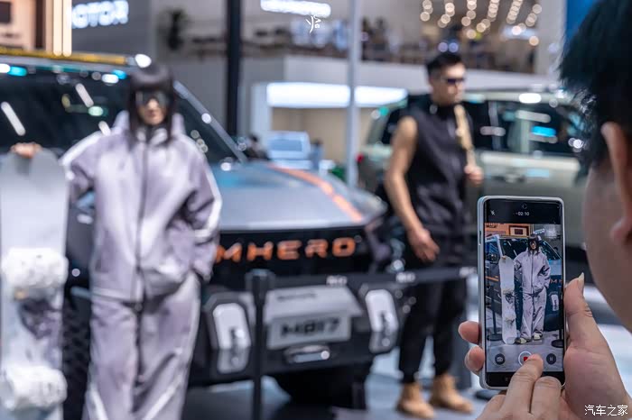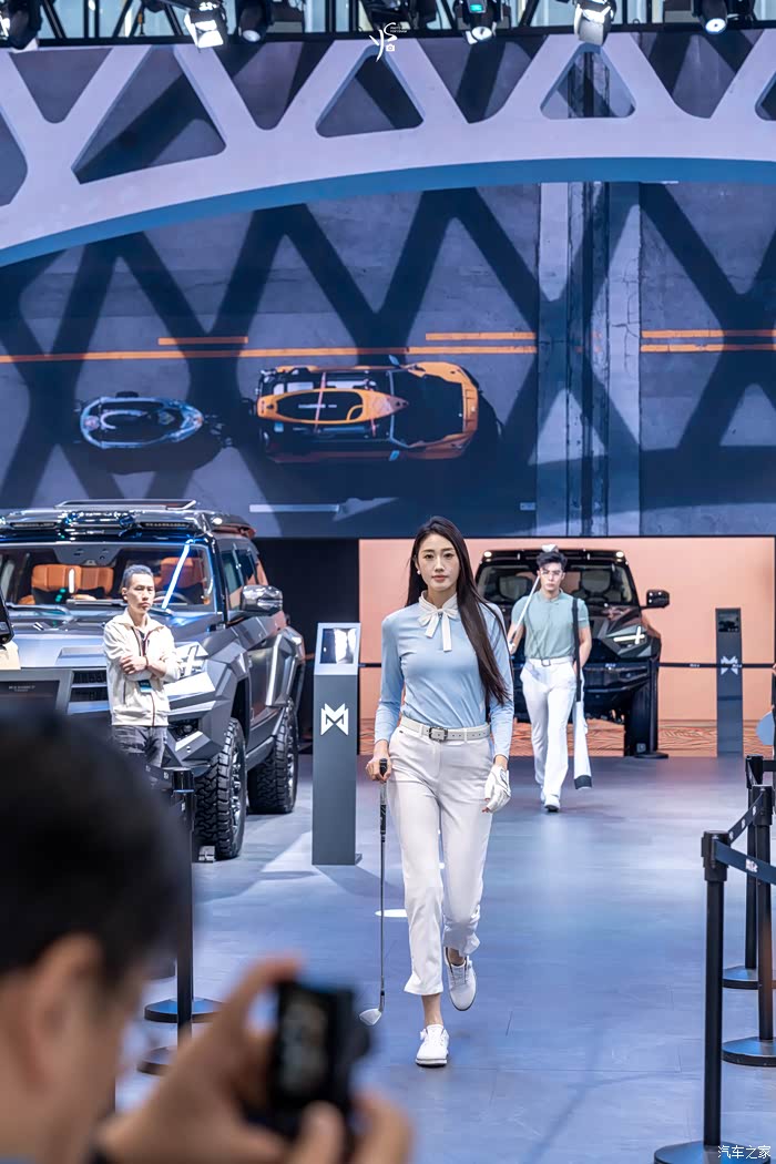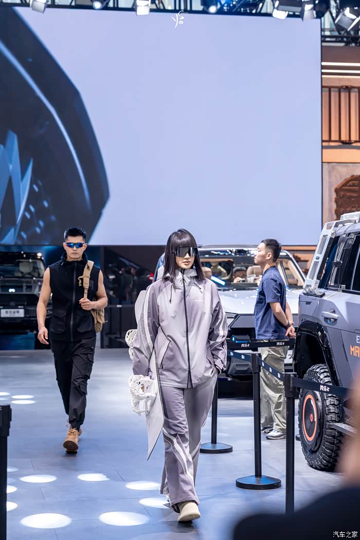 来到前面才发现原来是模特展示环节,各位模特行走在猛士的车辆之间,让原本硬派的猛士多了一份柔美和张力,与身后棱角分明的猛士汽车相映,也更能展示其日常使用场景。